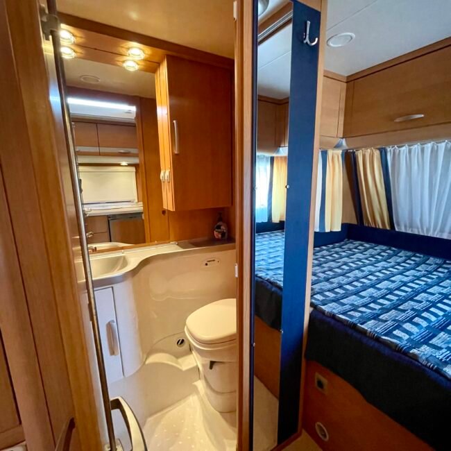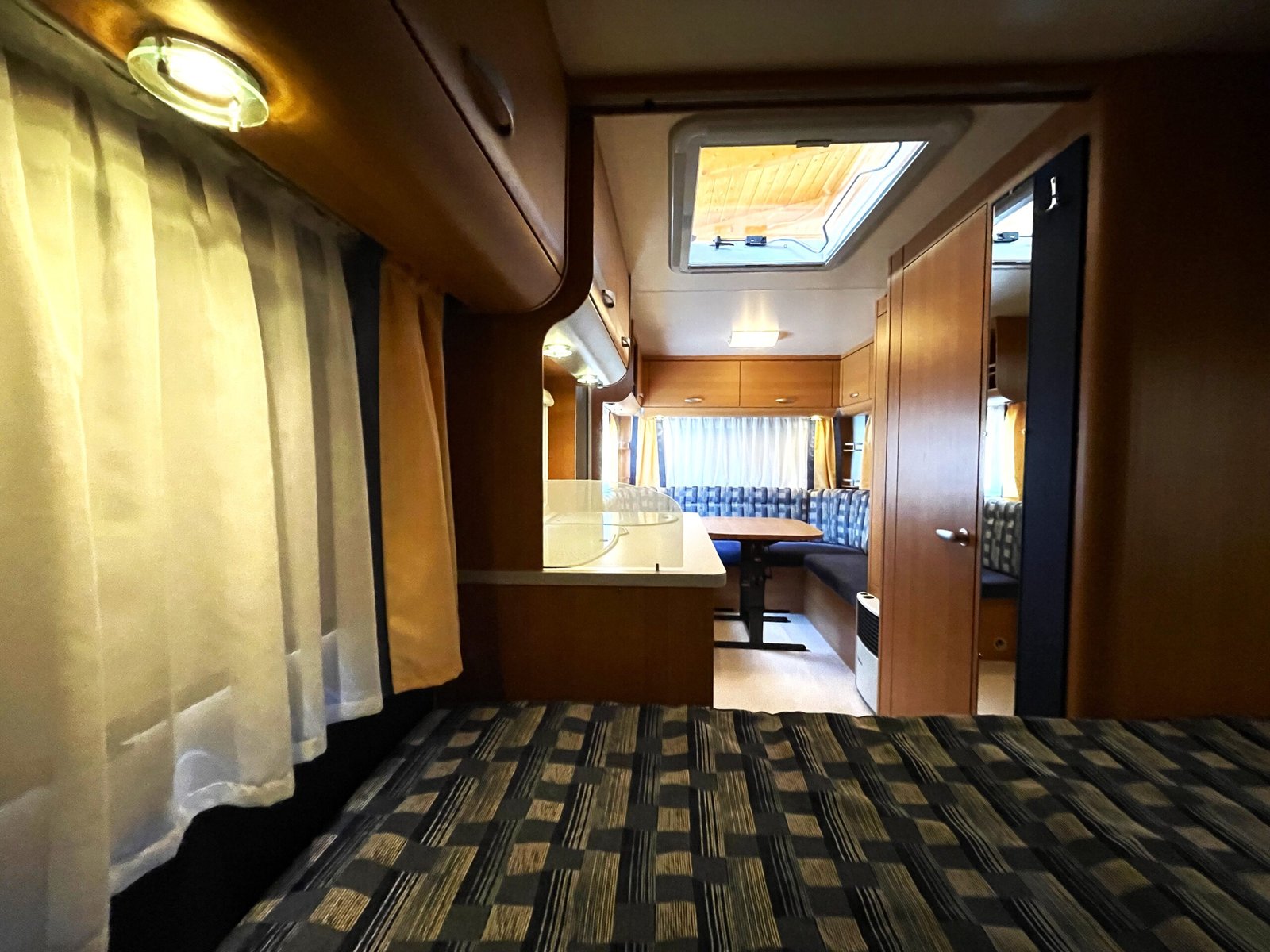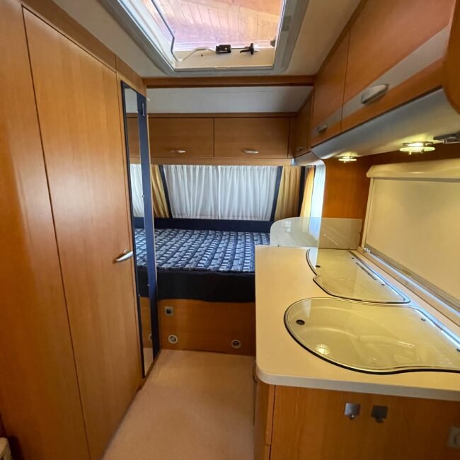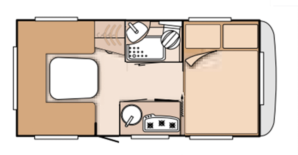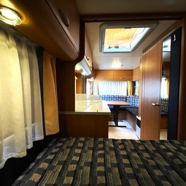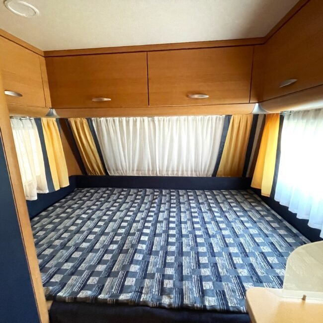 - V přední části karavanu dvojlůžko, v zadní části posezení do U rozložitelné na lůžko pro 2-3 osoby