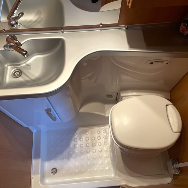 - Koupelna s umyvadlem a chemickým WC (včetně chemie a toaletního papíru)
